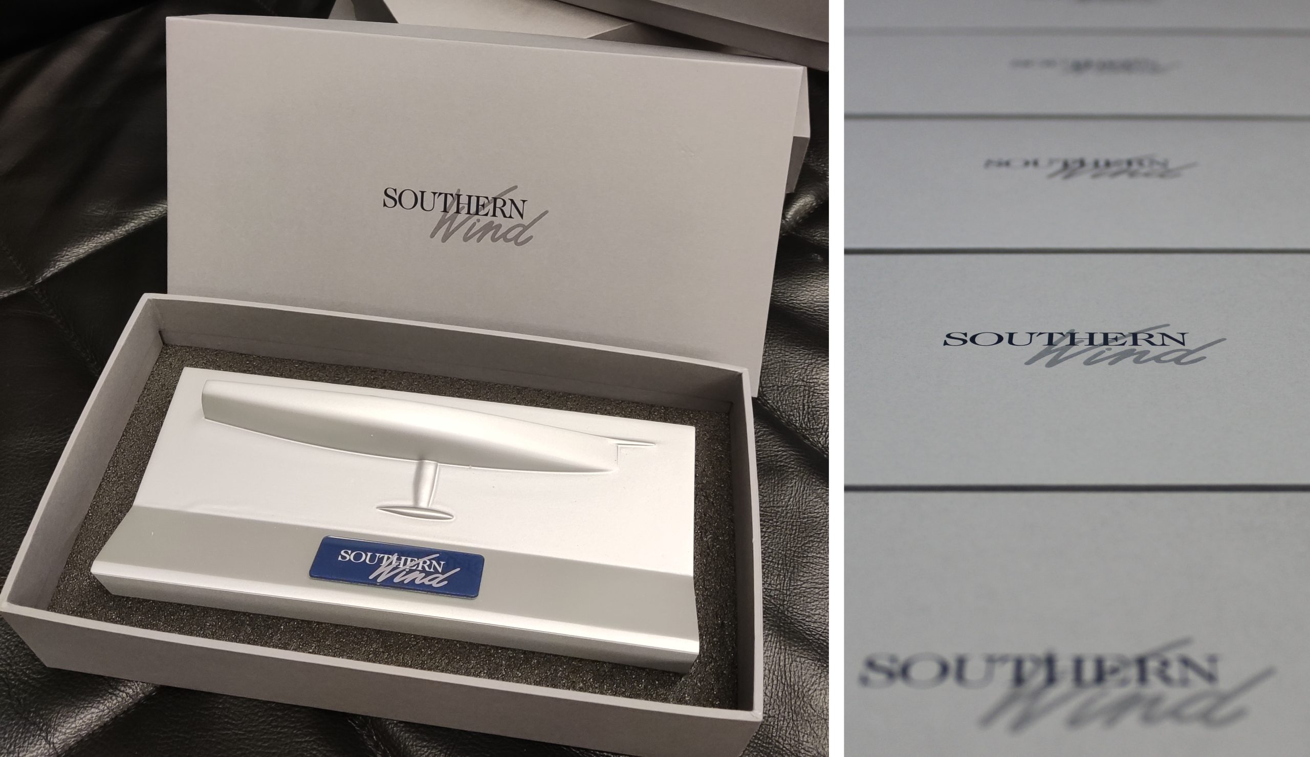 Questo progetto è nato con una richiesta ben precisa da parte del committente, Southern Wind, creare un packaging semplice per mettere in risalto il contenuto, ovvero il prezioso modellino di un’imbarcazione. Abbiamo progettato una scatola poco più grande del modellino, successivamente abbiamo ricavato dal cartone i componenti della scatola e poi abbiamo rifasciato il tutto con carta specifica. Il tutto è stato realizzato con cura unendo tecniche artigianali e design rendendo ogni scatola unica.