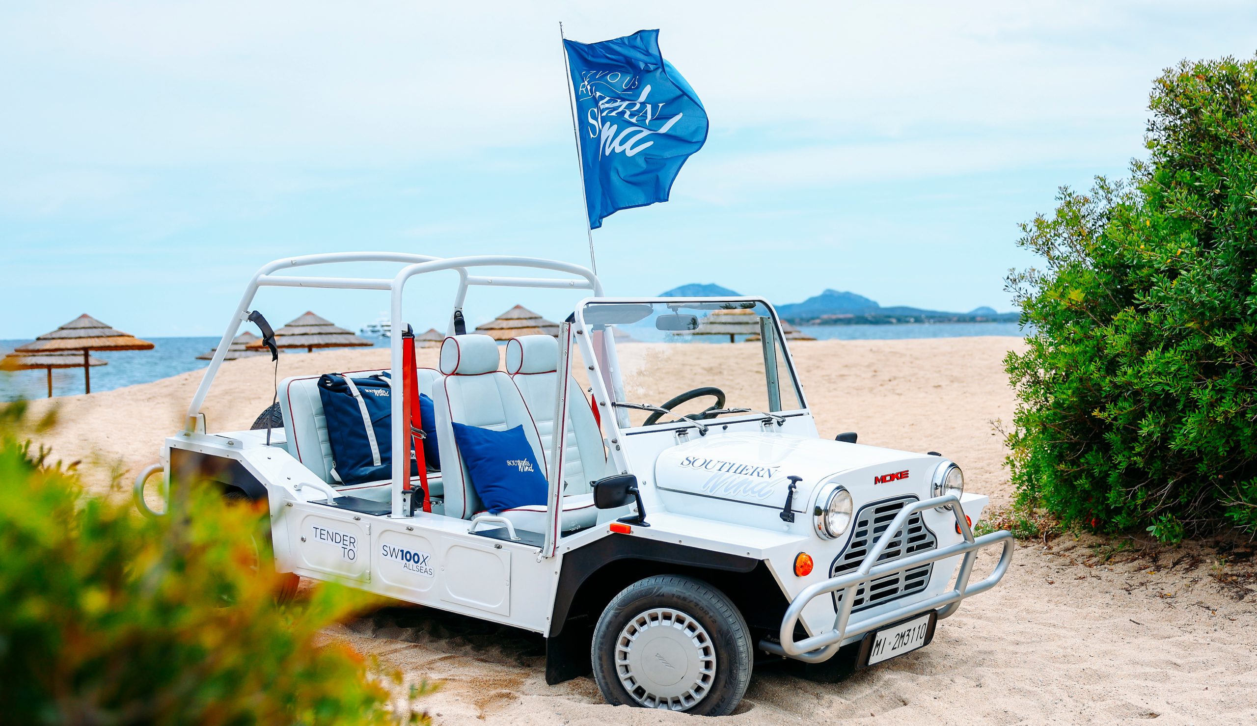 Per completare l’esperienza degli eventi Southern Wind, decoriamo le vetture con cuscini ricamati, flag e adesivi magnetici. Questi ultimi, facilmente rimovibili, permettono una personalizzazione temporanea, senza necessità di interventi post-evento, mantenendo intatta la perfezione delle vetture.
